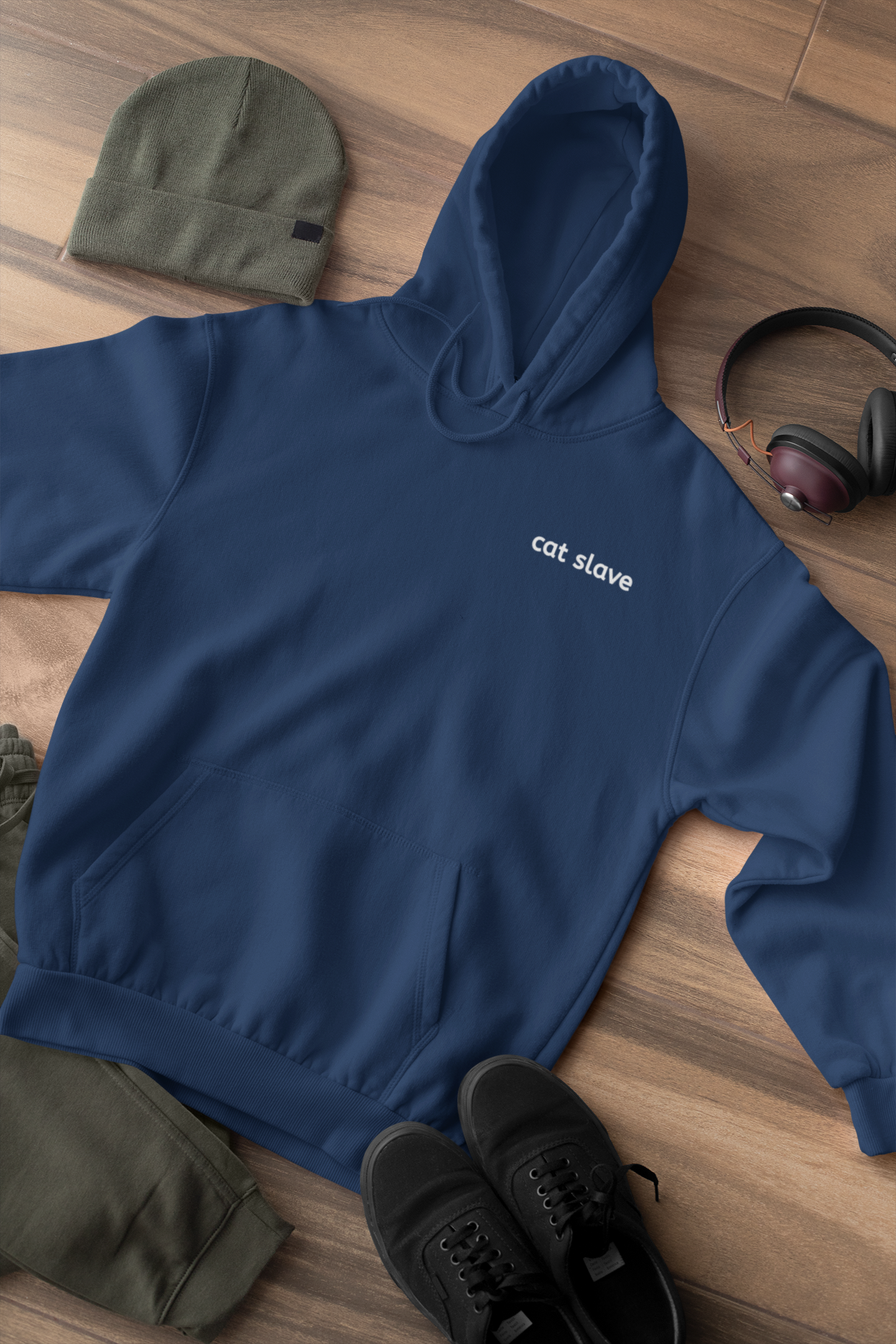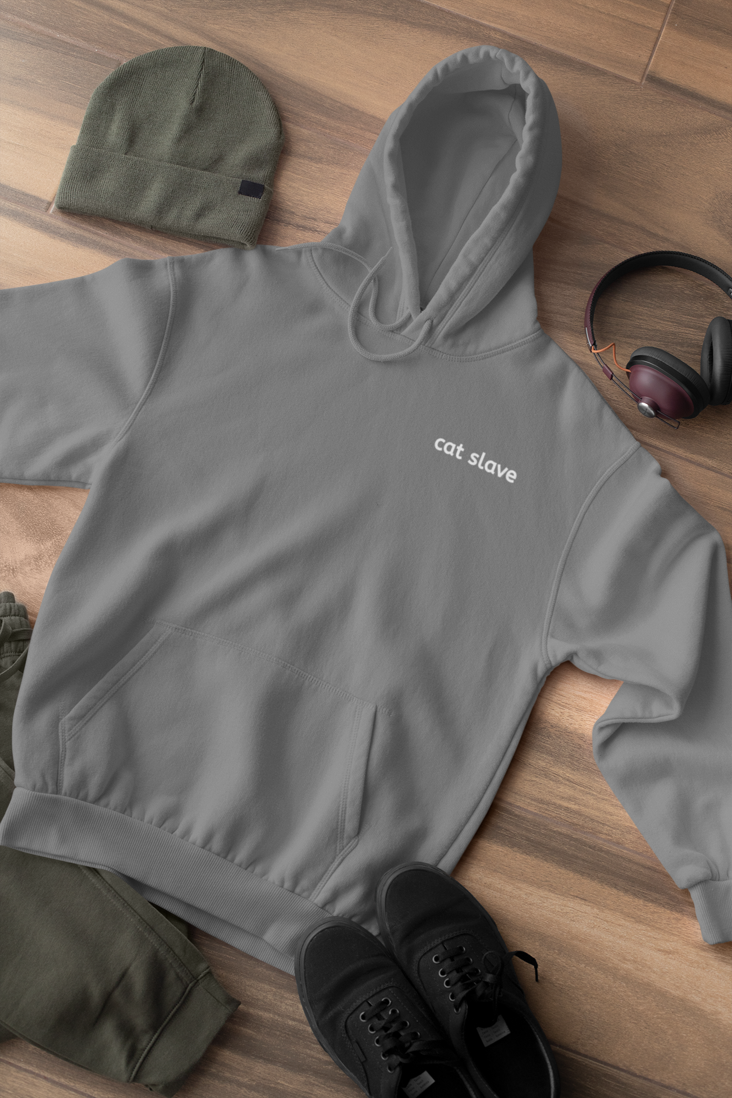 Wrap yourself in cozy servitude with this “cat slave” hoodie — a warm embrace for those who answer to the call of the meow. Minimalist yet bold, it’s perfect for chilly mornings spent refilling food bowls or late nights being stared at from the windowsill.