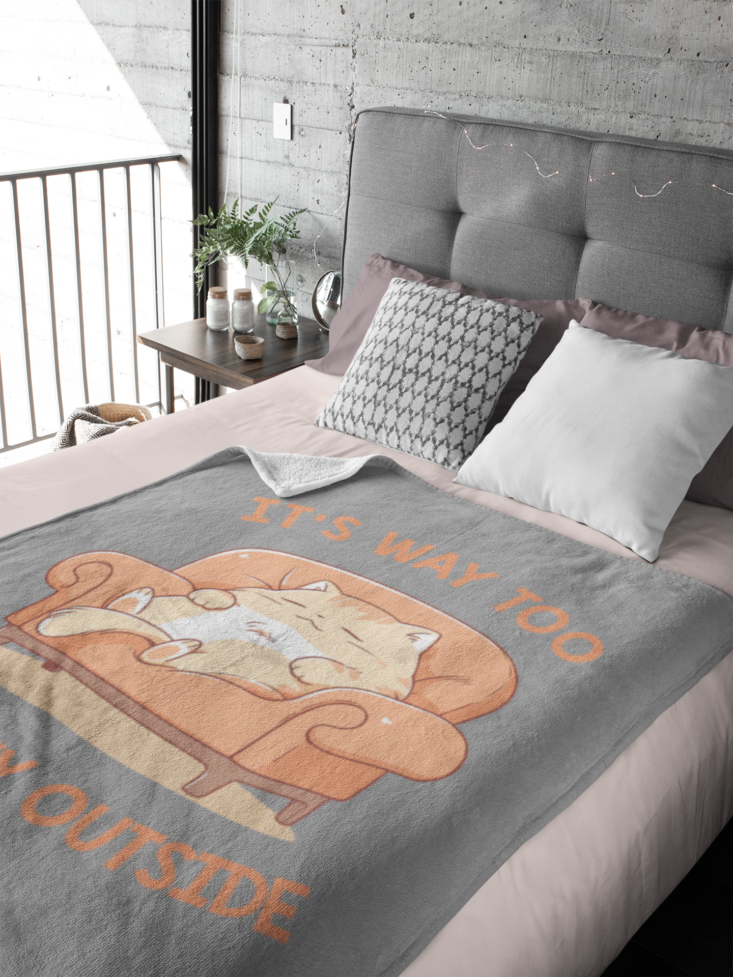 Sometimes staying in is the best plan. The It’s Way Too Peopley Outside Blanket features an adorably chubby cat relaxing in a cozy armchair, perfectly capturing that “do not disturb” mood.