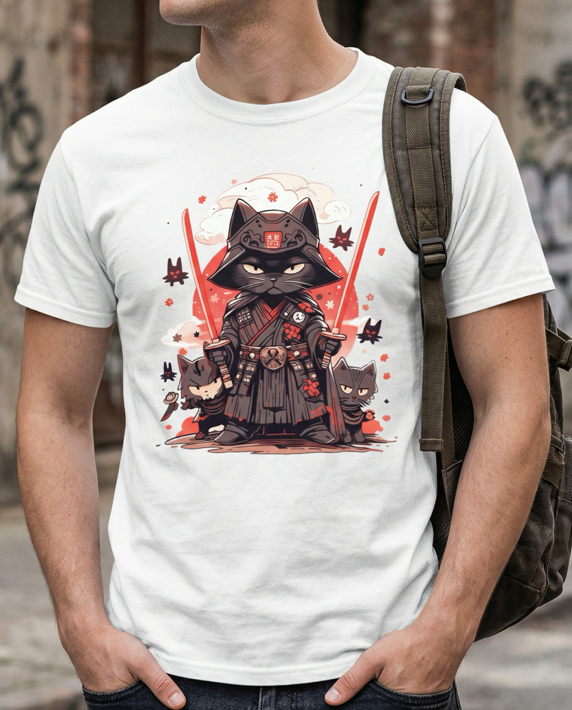 This tee features a powerful samurai cat, fully armored and ready for battle — blending sleek elegance with a dark, commanding presence. With its detailed armor, glowing intensity, and katana held with quiet confidence, this isn’t just a cute cat... it’s a force to be reckoned with.