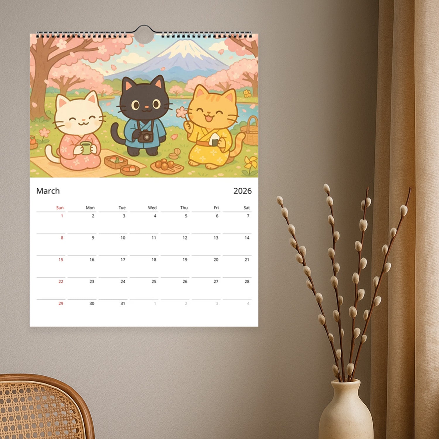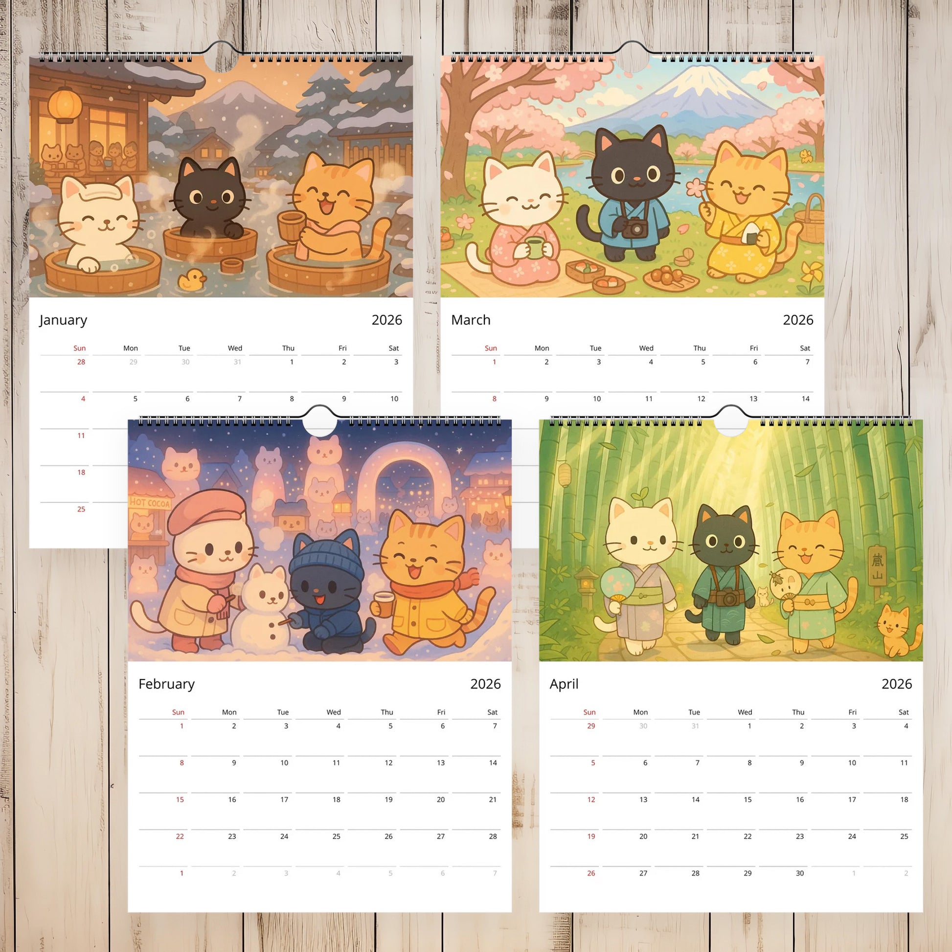 Each month brings a new, heartwarming scene drawn in soft Japanese kawaii style, blending culture, seasons, and feline charm. Perfect for cat lovers, Japan fans, and anyone who adores cozy, feel-good art.