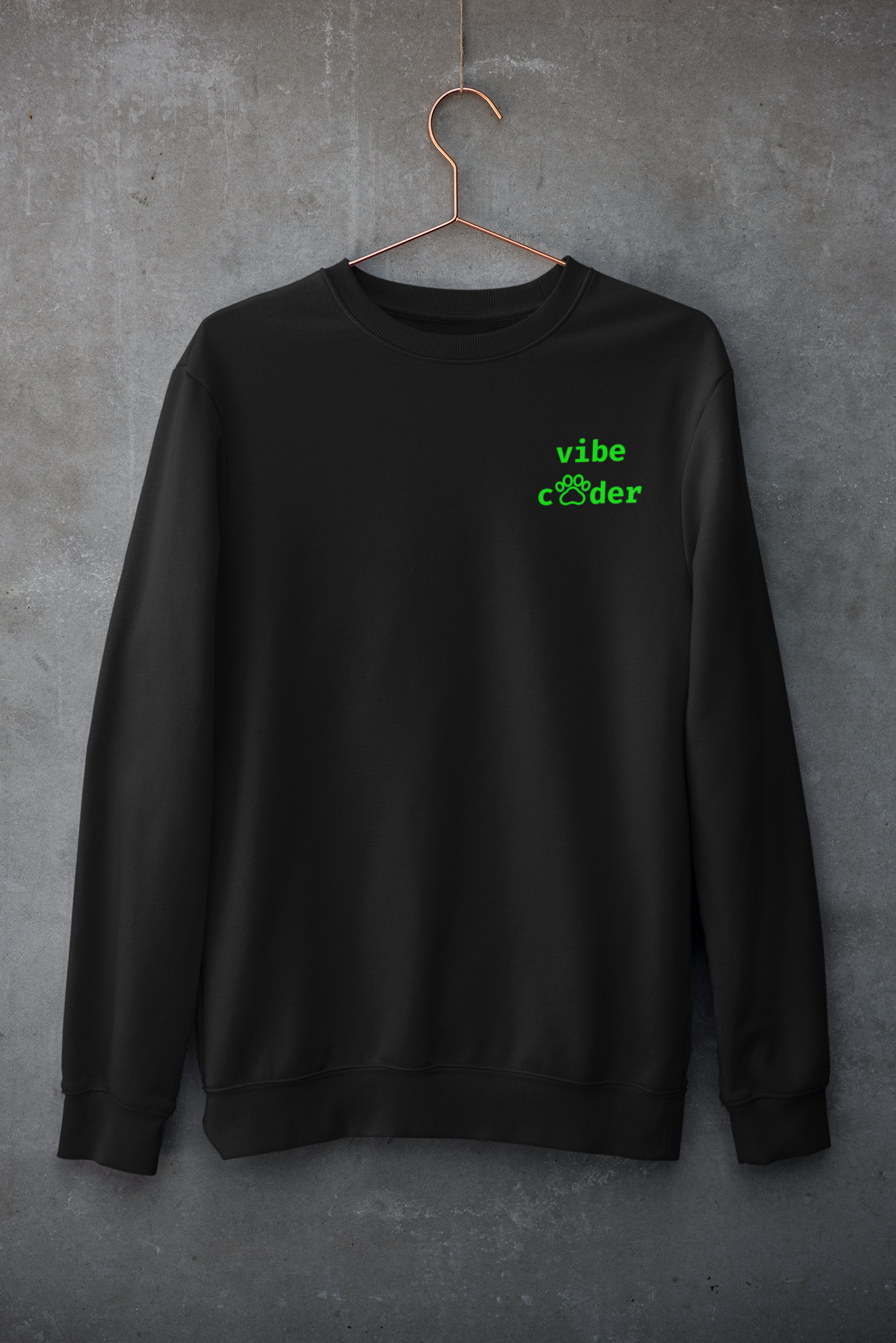 With the sleek “Vibe Coder” graphic featuring a playful cat paw in place of the “o,” this sweatshirt blends tech confidence with just the right touch of feline flair. Soft on the inside, cool on the outside — ideal for long debugging sessions, brainstorming over coffee, or just chilling with your favorite code reviewer (aka your cat).